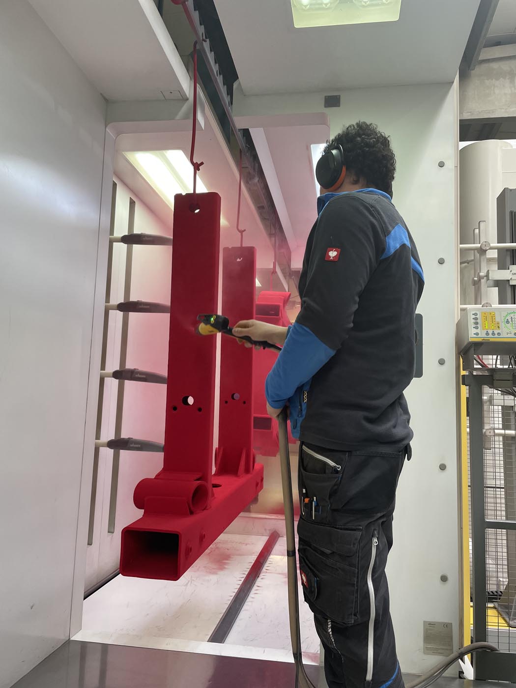 Praškasto barvanje gozdarske mehanizacije: vitli, gozdarske prikolice GAP, hidravlična traktorska dvigala DOT